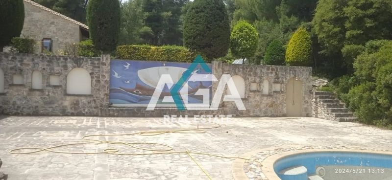 Το ακίνητο βρίσκεται σε οικόπεδο 5.500 τ.μ., περιτριγυρισμένο από καταπράσινα δέντρα, υπέροχο κήπο, ιδιωτική πισίνα, γεώτρηση, και πολυτελείς παροχές που εξασφαλίζουν άνεση και ιδιωτικότητα.