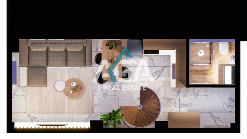 - Αποτελείται από ευρύχωρη σαλοκουζίνα και σύγχρονο μπάνιο/WC. Ο χώρος διαθέτει πλήρως εξοπλισμένη κουζίνα με όλες τις ηλεκτρικές συσκευές (ηλεκτρική κουζίνα, φούρνος, απορροφητήρας, ψυγείο, πλυντήριο ρούχων), τραπεζαρία, τριθέσιο καναπέ, SMART TV και κλιματιστικό inverter.